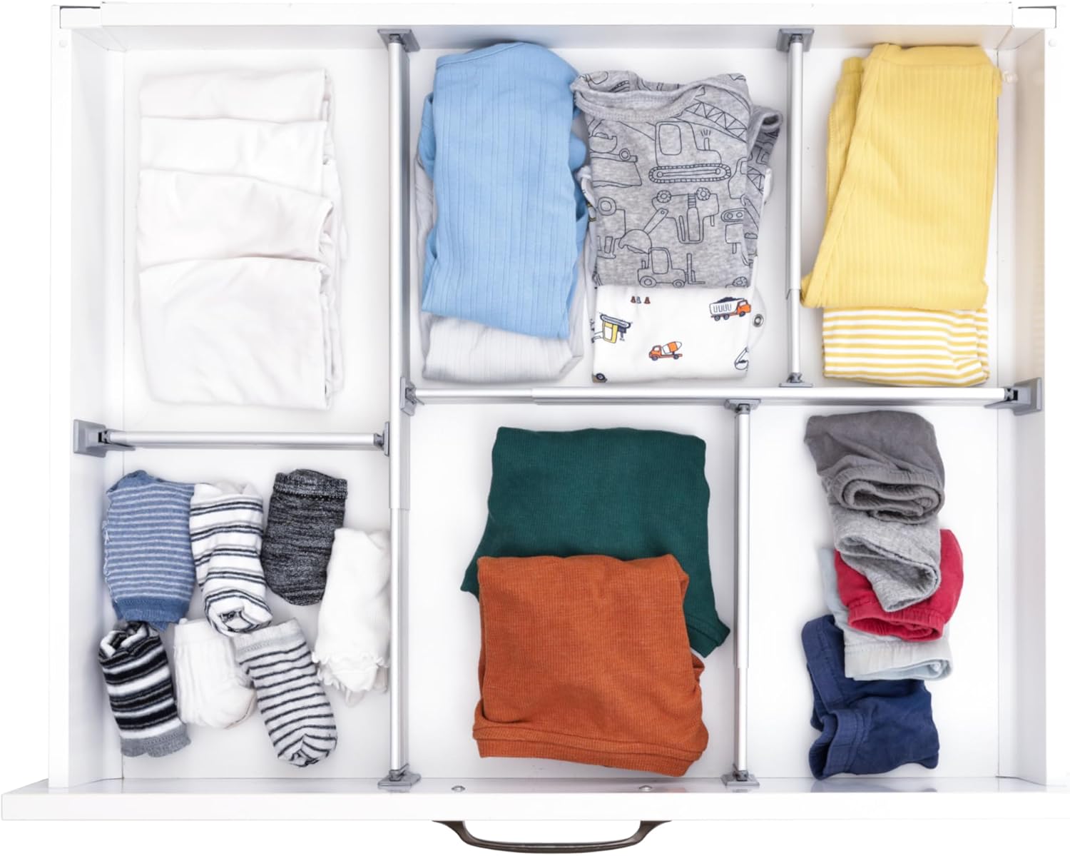 9 מחלקי מגירה מתכווננים מאלומיניום, כסף (3L+3M+3S)