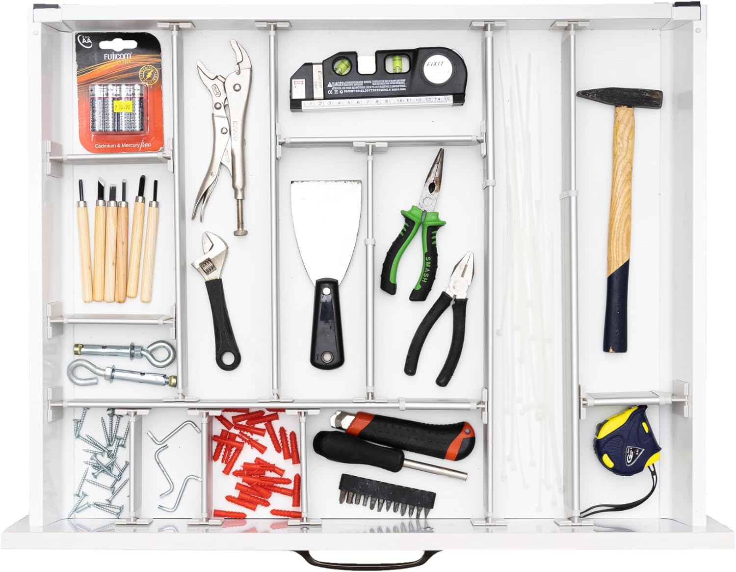 3 מחלקי מגירה מתכווננים מאלומיניום, לבן (1L+1M+1S)