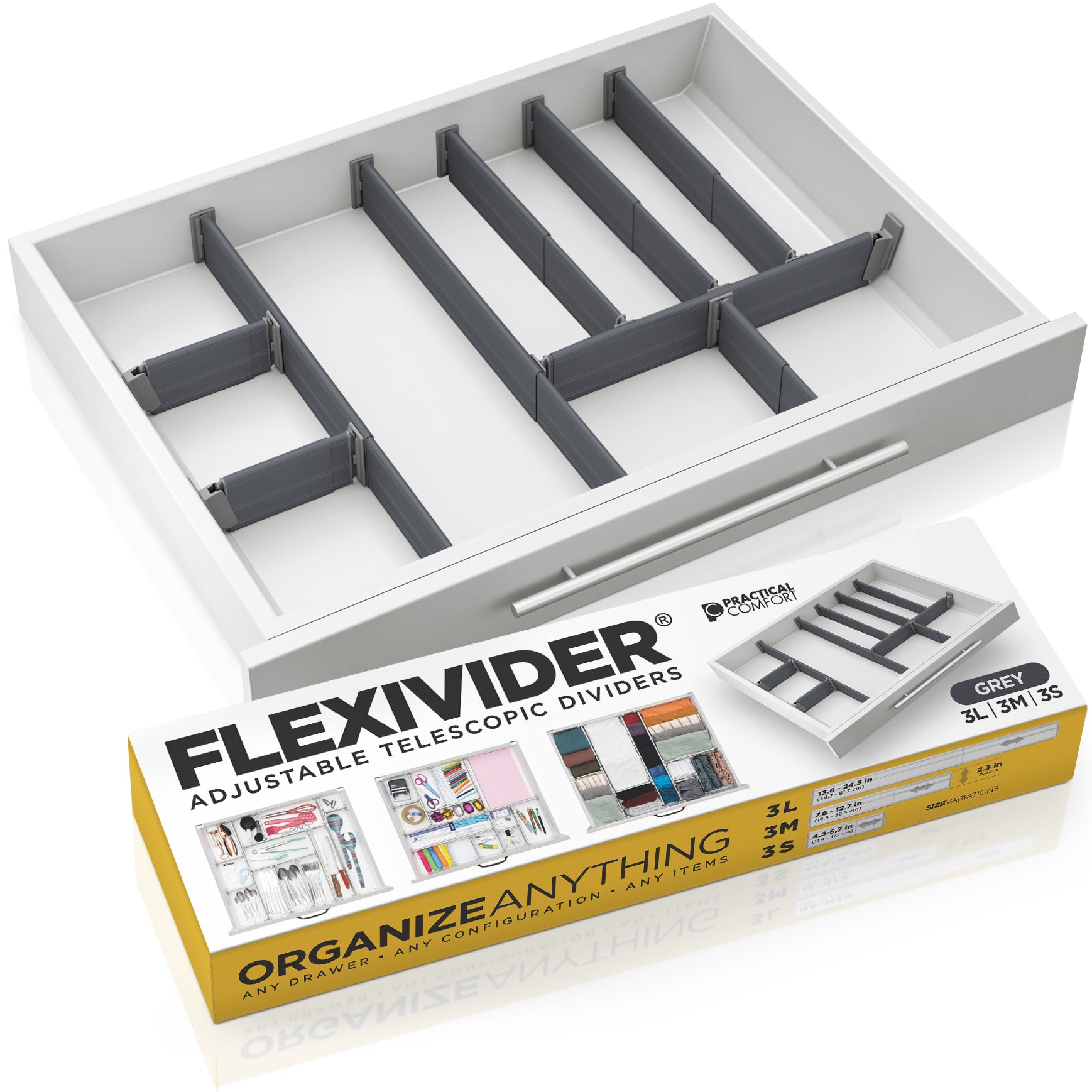 שדרגו את הסדר במטבח, במשרד, באמבטיה או בחדר השינה עם FLEXIVIDER – מפריד המגירות המתכוונן והאיכותי.